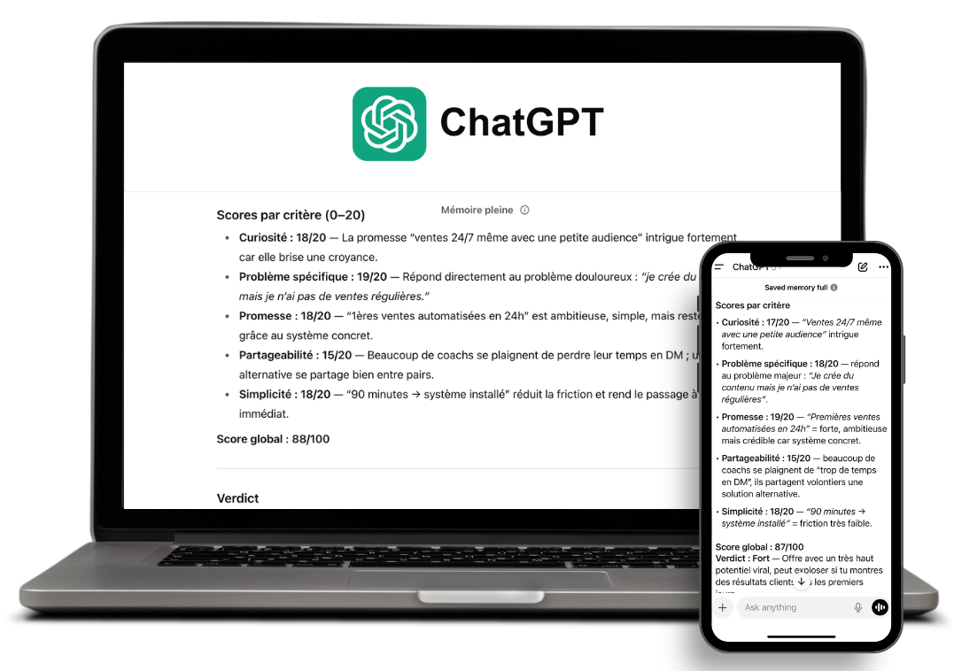 J’ai créé un tout nouveau prompt ChatGPT qui vous dit si votre offre peut réellement exploser, j'ai aussi glissé un Notion pour vous montrer comment l’utiliser et obtenir des résultats personnalisés pour votre offre